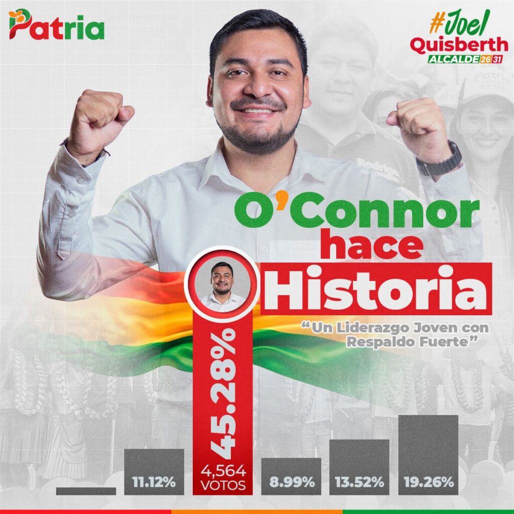 “Hemos ganado con una amplia diferencia, realmente sorprendidos por el cariño de la gente. Hemos construido un proyecto político serio desde la gente, desde las comunidades”, afirmó Quisbert tras conocerse los resultados oficiales. El joven alcalde destacó que su liderazgo no surgió en tiempos de campaña, sino que se forjó desde su niñez con representaciones estudiantiles y universitarias, y luego con un trabajo territorial de más de seis años recorriendo las comunidades de su provincia.