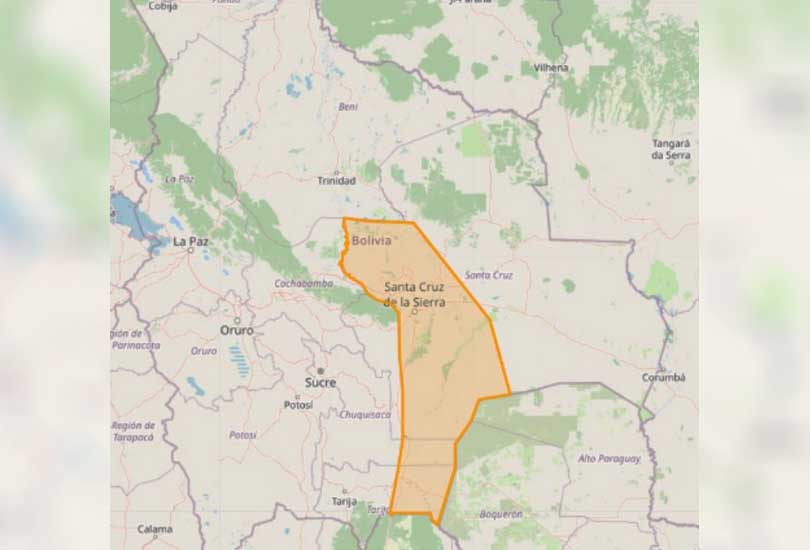 Se prevé ventarrones en las provincias cruceñas Ibáñez, Warnes, Ichilo, Sara, Santiesteban, noroeste de Cordillera y Chiquitos, sudeste de Guarayos con velocidades entre 60 y 90 kilómetros por hora.