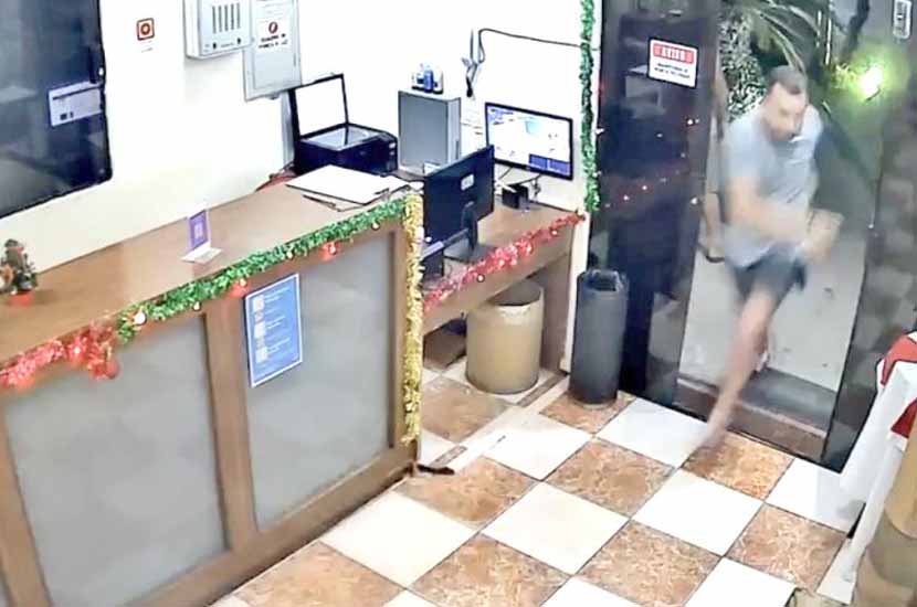 De acuerdo con la denuncia, tres delincuentes llegaron al lugar a bordo de un vehículo, anunciaron el robo y actuaron con rapidez. Las imágenes muestran a uno de los asaltantes acercándose armado al ingreso del hotel y amenazando a las personas presentes. Uno de ellos, que vestía una camiseta azul, apuntó con un arma de fuego a un empleado del hotel, quien terminó entregándole su anillo de bodas. En la escena también se encontraba una mujer con un niño en brazos, mientras otros testigos observaban el asalto en estado de shock. El atraco duró poco más de un minuto.