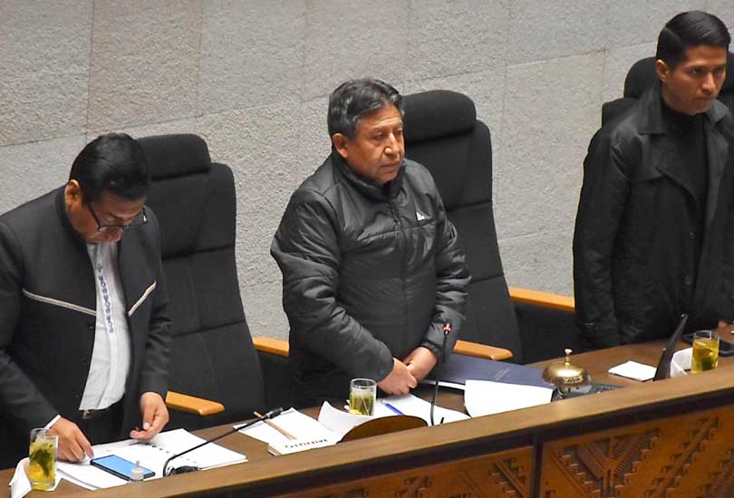 Mediante un comunicado, el presidente nato de la Asamblea Legislativa, David Choquehuanca, declaró receso legislativo de dos semanas, desde el 13 al 27 de julio, pese a que no se pudo sesionar para que el pleno avale la decisión.