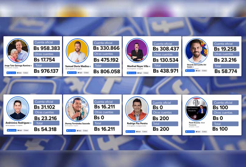 De hecho, en los últimos 90 días, los ocho candidatos presidenciales en carrera electoral han destinado un total de Bs 2.350.796 a propaganda pagada en Facebook, de acuerdo con datos de la Biblioteca de Anuncios de Meta.