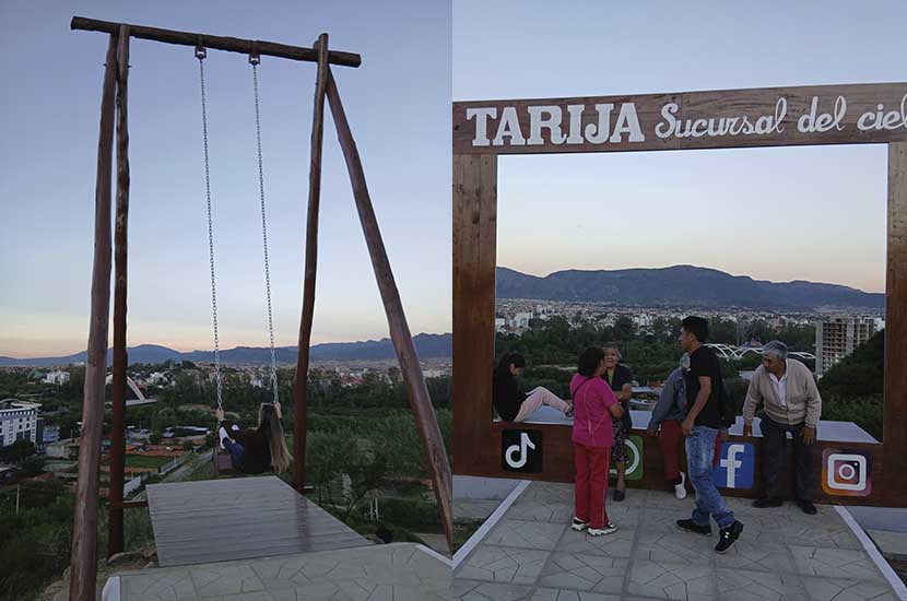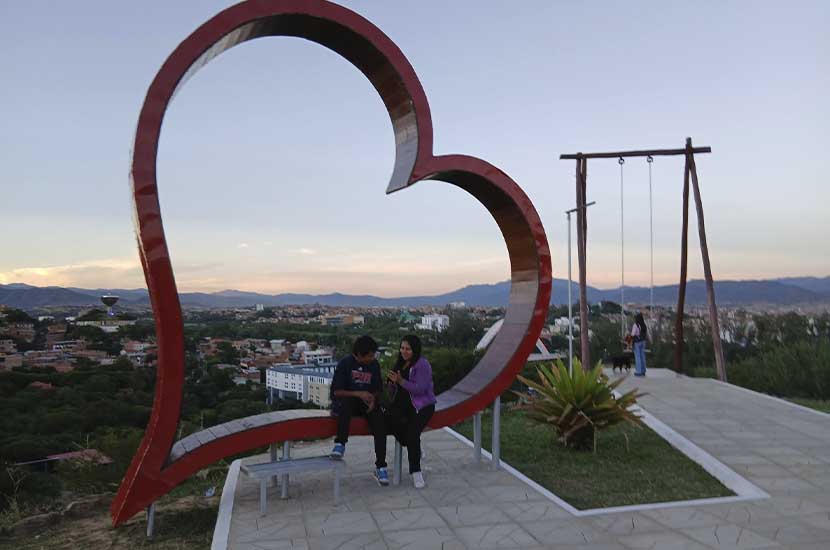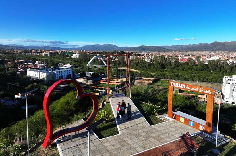 El nuevo espacio cuenta con atractivos pensados para el turismo y la recreación familiar, como un gran corazón para fotografías, un marco con la frase “Tarija, sucursal del cielo” y un llamativo columpio panorámico que, según indicó el alcalde, será fijado para garantizar la seguridad y permitir que vecinos y visitantes se tomen fotografías de recuerdo.
