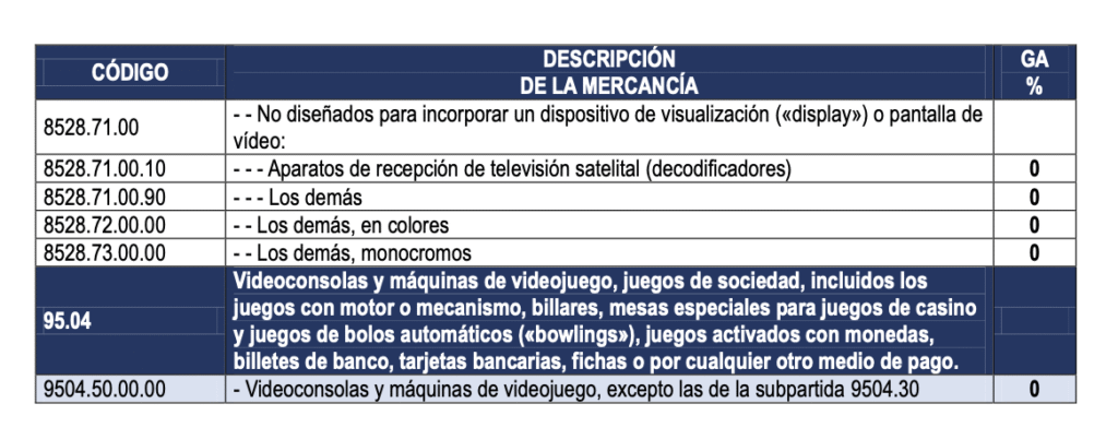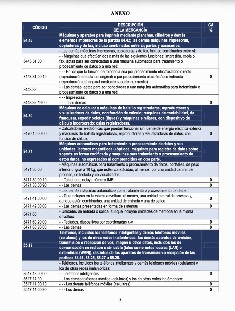 En el anexo del decreto se detalla la lista completa de los artículos beneficiados con el arancel cero. Estos son: