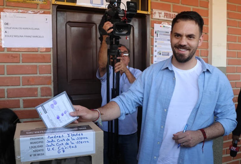 Carlos Eduardo del Castillo del Carpio, candidato a presidente por el Movimiento al Socialismo (MAS)- IPSP, fue el primer presidenciable en votar. El candidato llegó a su recinto electoral en la U.E. Cáritas, ubicada en la zona sur de Santa Cruz de la Sierra, lo hizo solo, con un semblante sereno.