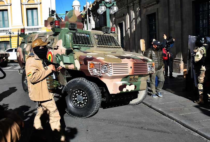 El fin era ingresar al Palacio de Gobierno y tomar el poder político, como lo dijo el mismo militar. En ese afán, el presidente Luis Arce detuvo su avance en la puerta de ese edificio. El militar se insubordinó ante el mandatario, por lo que éste decidió cambiar, de inmediato, al Alto Mando Militar, cuya primera orden fue el repliegue de efectivos y vehículos a sus unidades.