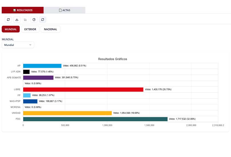 Con el cómputo oficial concluido, Rodrigo Paz, candidato del Partido Demócrata Cristiano (PDC), obtuvo una ventaja de cinco puntos porcentuales sobre Jorge Tuto Quiroga, de la alianza Libre, consolidándose como el ganador de la primera vuelta.