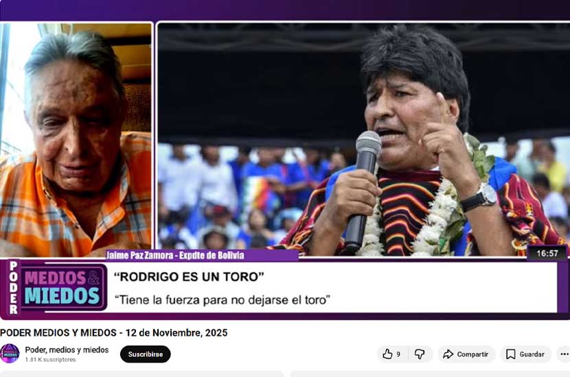 El expresidente Jaime Paz, padre del presidente Rodrigo Paz, señaló que su homólogo y exlíder masista, Evo Morales, «está buscando que lo carneen» por «molestar» al país. El líder cocalero lanzó una serie de críticas a horas de la posesión del gobierno del flamante jefe de Estado, Rodrigo Paz, durante los últimos días en su programa radial.