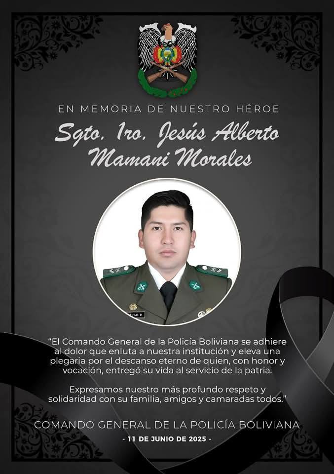 El sargento segundo Jesús Alberto Mamani Morales se convirtió este miércoles en la víctima de los violentos enfrentamientos de la localidad de Llallagua, informó el Comando Departamental de la Policía de Potosí.
