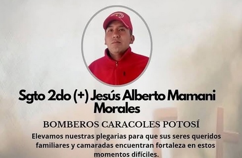 En una publicación difundida en redes sociales, el comandante departamental de la Policía de Potosí, coronel José Luis Arancibia, expresó sus condolencias a los familiares por el deceso del efectivo que se desempeñaba en la Unidad de Bomberos Caracoles de la Villa Imperial.