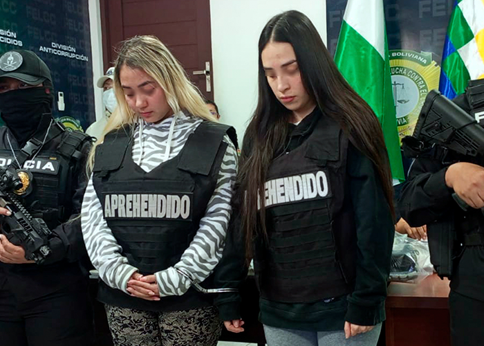 El comandante de la Policía en Santa Cruz, coronel Erik Holguín, presentó a dos mujeres implicadas en el secuestro del empresario brasileño Marcos Ferreira Paz. Nahiely Arteaga Y. y Ariane Céspedes C., parejas de los autores materiales Marcos Andrés Zelaya Villa y Eliverto Choma, fueron enviadas a la cárcel de Palmasola por 180 días, acusadas de secuestro y portación de armas de fuego.