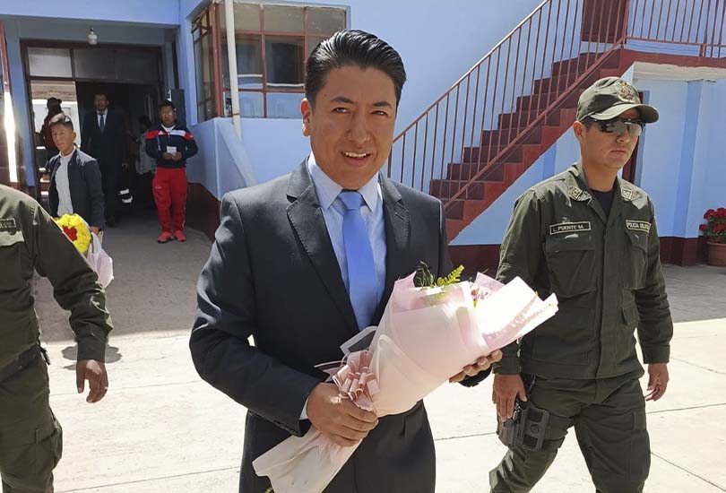 Vestido de traje y con un ramo de flores en la mano, el excívico estuvo acompañado por agentes policiales durante la ceremonia. En un mensaje publicado en Facebook, Pumari agradeció la oportunidad de presenciar este evento.