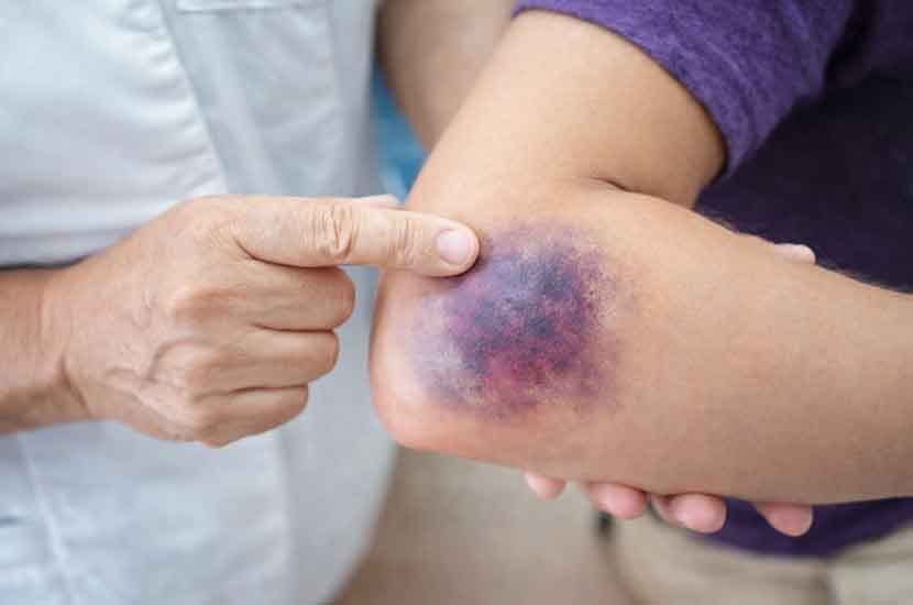 Esto podría significar que estás sangrando dentro de tu cuerpo cuando no deberías. Otros signos incluyen una erupción formada por pequeños hematomas, llamada púrpura; o pequeñas manchas rojas del tamaño de una punta de alfiler llamadas petequias.