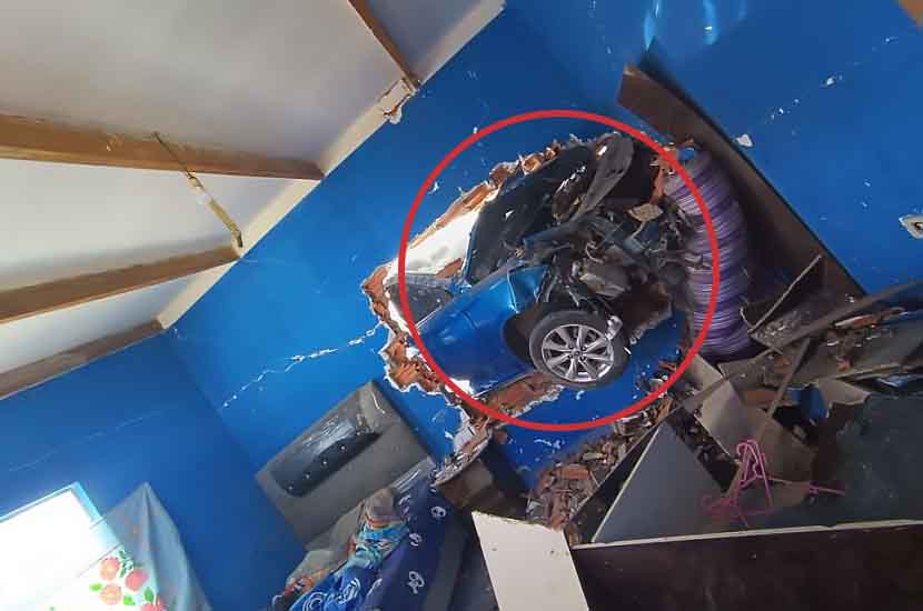 El hecho ocurrió en horas de la mañana de este sábado, cuando el conductor perdió el control del vehículo y colisionó contra la pared de la vivienda. El muro de ladrillos de seis huecos quedó completamente derrumbado y el motorizado terminó en el interior de un dormitorio, generando daños materiales de consideración.