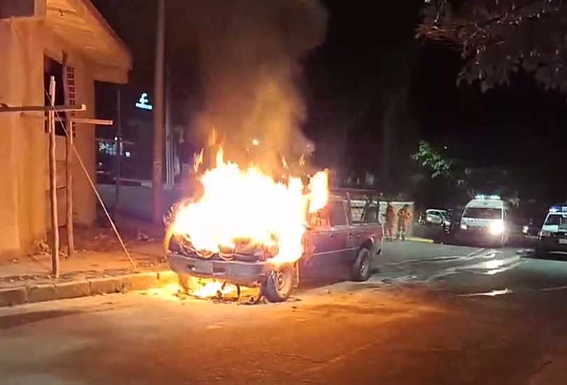 Tarija: Camioneta se incendia en el barrio Senac por presunto cortocircuito