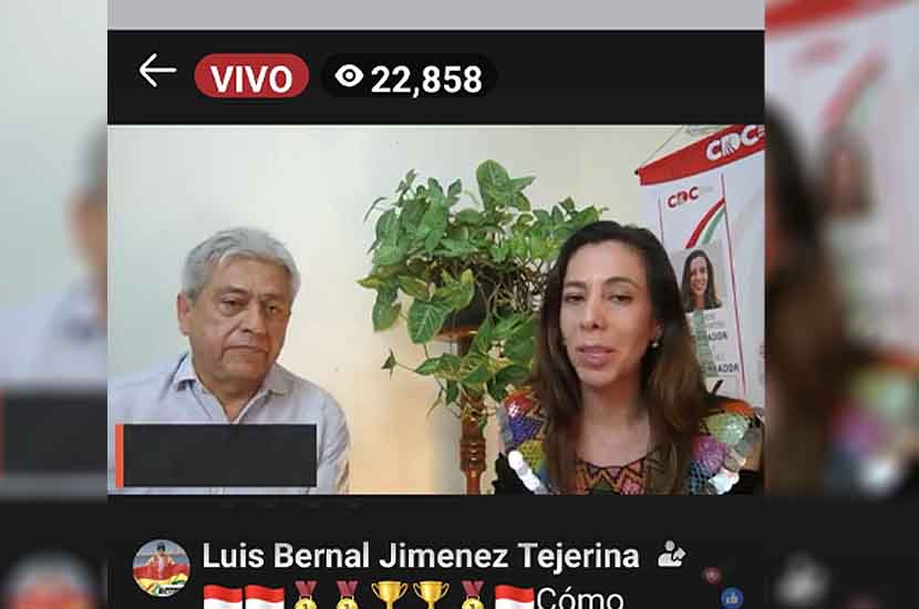 La candidata a gobernadora por Camino Democrático al Cambio, María René Soruco, junto al líder de la agrupación, Mario Cossío, participaron de un debate abierto y directo con la población mediante redes sociales, llegando a 23 mil conectados.
