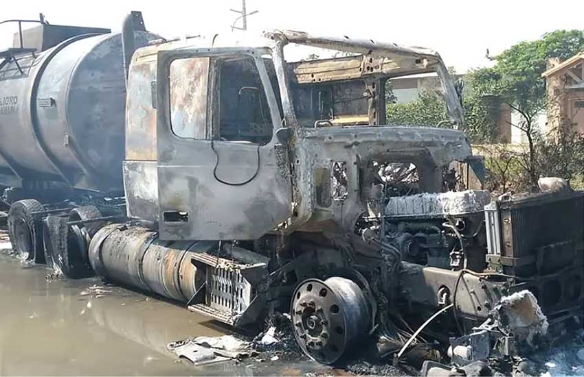 Hasta el lugar del incendio llegaron los bomberos de la Policía, quienes utilizando agua y espuma química ARF, lograron controlar el fuego que cubría la parte de la cabina del camión cisterna, además de la tracto y chata que también fueron afectadas.