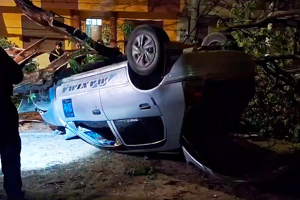 Un grave accidente de tránsito ocurrió en la madrugada de hoy cuando un vehículo marca Toyota sufrió un vuelco de tonel tras chocar contra un pretil y un árbol. El incidente tuvo lugar a las 00:15 horas en la Avenida Panamericana, en la rotonda del aeropuerto.